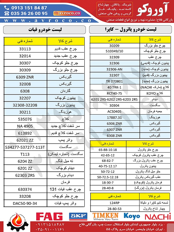 برای مشاهده تمام محصولات کاپرا، پاترول و فیات دکمه های زیر را کلیک کنید: