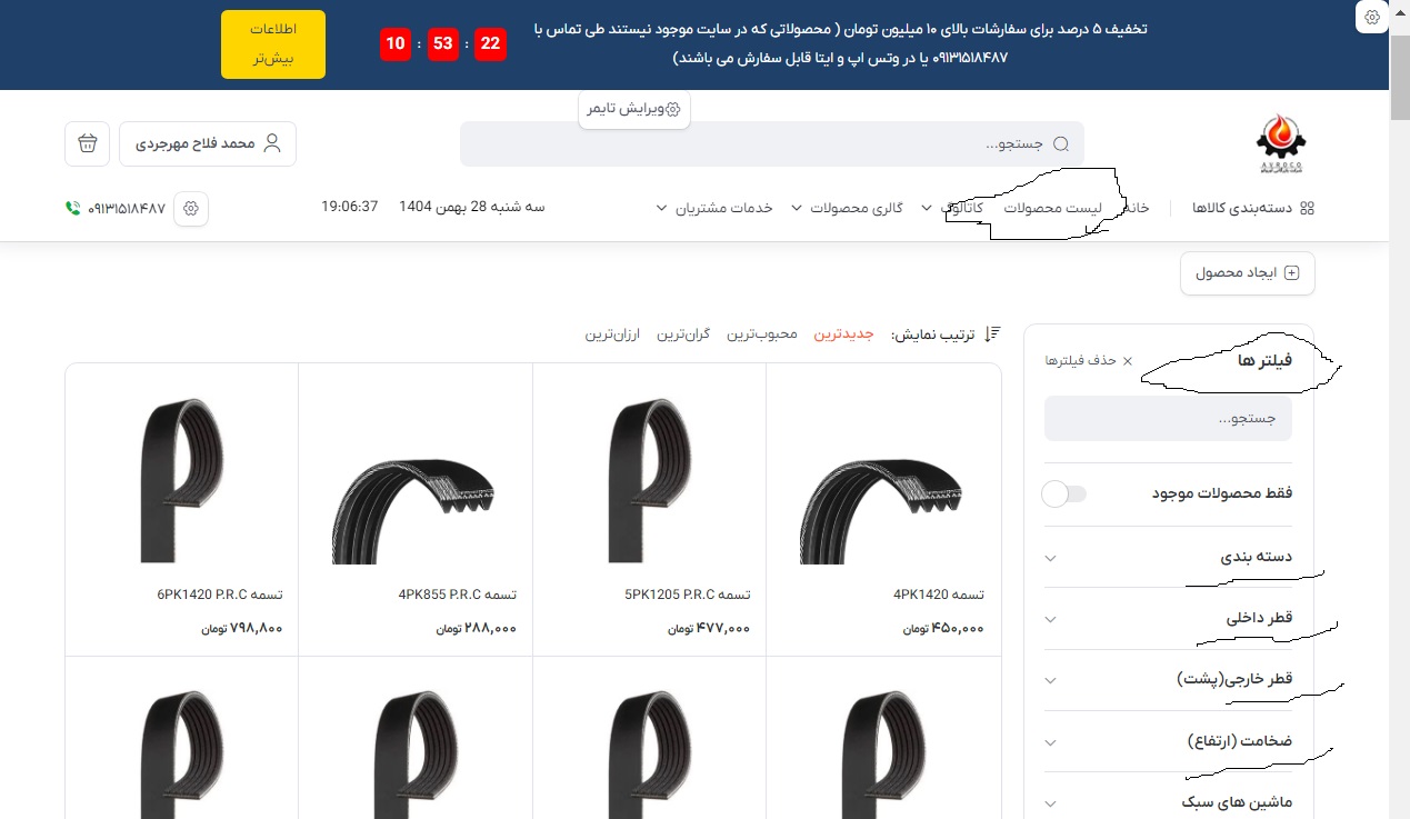 1. در صفحهنخست یا قسمت جست و جوی سایت، عنوان محصول مورد نظر خود را تایپ کنید تا به صفحه نمایش اطلاعات آن منتقل شوید. همچنین می توانید از قسمت بالای سایت در همان صفحه اصلی روی عنوان لیست محصولات در منوی سایت کلیک کنید و با استفاده از فیلترهای دسته بندی وارد صفحه محصول شوید.