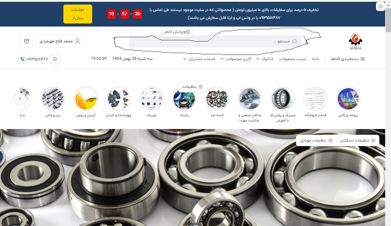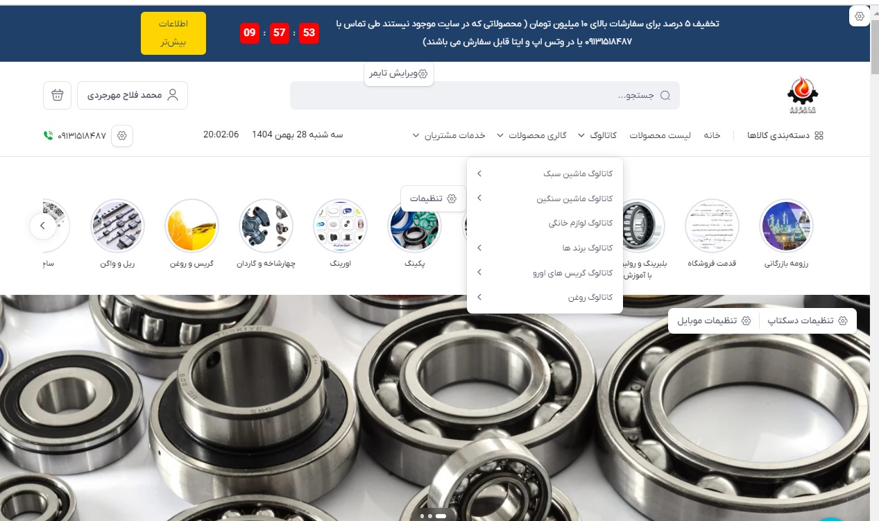 2. در صورتی که اطلاعاتی در هر زمینه از قبیل ابعاد، محل کاربرد، شماره فنی یا تصویر از قطعه درخواستی خود داشتید می توانید از ابزار جستجوی سایت و یا دسته بندی سایت استفاده کنید. در صورت لزوم اخذ اطلاعات بیشتر، از کاتالوگ های سایت که در رابطه با هر رسته کالایی موجود است استفاده نمایید.