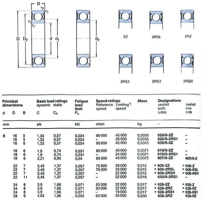 مقدار بار یکی از فاکتورهای تعیین کننده ابعاد بیرینگ است.عموما، رولربیرینگ توانایی حمل بار بیشتری نسبت به بلبرینگ ها با ابعاد مشابه دارند. بلبیرینگ ها عموما برای بارهای کم و متوسط بکار می روند. برای بارهای سنگین و شفت های قطور رولربیرینگ ها انتخاب مناسب تری می باشد. در شکل زیر هندسه و شکل کلی این مدل از بلبرینگ ها را مشاهده می فرمائید که ابعاد اصلی و دیگر پارامترهای سرعت و.... آنها نمایش داده شده است.